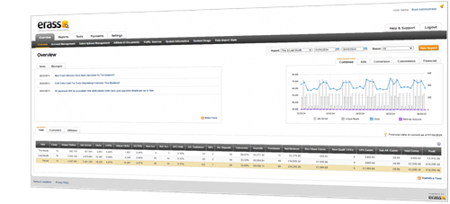 ERASS is designed specifically for the online retail industry to enable you to launch and manage your own inhouse affiliate program with the latest software platform, integrated content delivery network and on demand support services. Easy affiliate account management with fully customisable Revenue Share, CPA, CPL, CPC and Hybrid commission models as standard. A fully flexible and scalable solution to suit the needs of any size online marketing business.